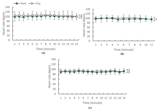 - Song, C.; Joung, D.; Ikei, H.; Igarashi, M.; Aga, M.; Park, B.J.; Miwa, M.; Takagaki, M.; Miyazaki, Y. Physiological and psychological effects of walking on young males in urban parks in winter. J. Physiol. Anthropol. 2013, 32, 18. [Google Scholar] [CrossRef] [PubMed]