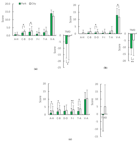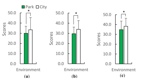 - Takayama, N.; Korpela, K.; Lee, J.; Morikawa, T.; Tsunetsugu, Y.; Park, B.J.; Li, Q.; Tyrväinen, L.; Miyazaki, Y.; Kagawa, T. Emotional, restorative and vitalizing effects of forest and urban environments at four sites in Japan. Int. J. Environ. Res. Public Health 2014, 11, 7207–7230. [Google Scholar] [CrossRef] [PubMed]