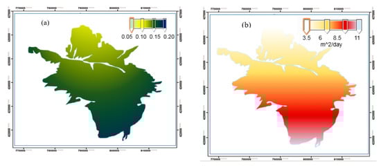 (a) Spatial specific yield and (b) hydraulic conductivity.