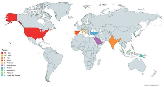 Figure 2 presents the location of the authors involved in the analyzed studies included in the analysis done in this paper.