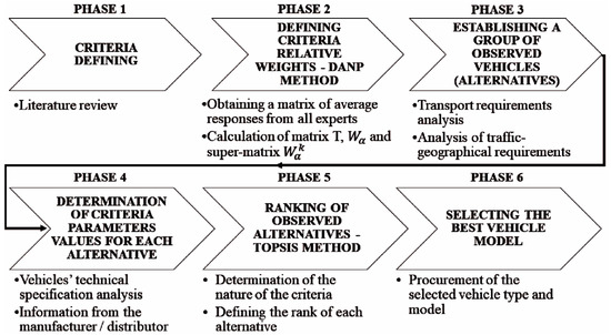 The procedure of the developed model for efficient vehicle procurement is shown in Figure 1. There are six phases that are described in the following subchapters.