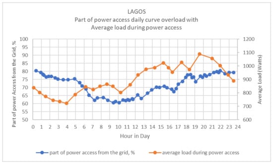Lagos: part of power access vs average load during power access.