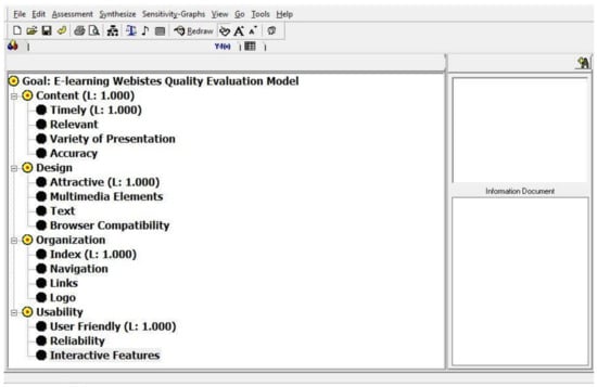 Although a variety of e-learning quality models and frameworks have been proposed by researchers, certain limitations have been observed in these e-learning evaluation models. Firstly, some of these models have not considered the stakeholders of paramount importance with regard to e-learning websites. For example, the student’s perspective is an important aspect of the quality of e-learning websites. The e-learning websites should not be something that are merely imparted to a passive student. Instead, high quality e-learning websites should be developed through a process of co-production between the students and the learning system. The teacher’s perspective is also critical to ensure the quality of e-learning websites. It is the teacher who can offer suggestions regarding the teaching/learning method. Similarly, the educational experts can provide an appropriate learning strategy for the students being served through the educational website. Furthermore, the players from the e-learning industry, including designers and developers, can also make suggestions to evaluate the web-based e-learning systems []. Secondly, the majority of the quality models focused on pedagogical characteristics, including the learner, instructor, institution, social, and management, etc.. The software characteristics, such as design, usability, and digital contents have been ignored. Thirdly, some frameworks have addressed the limited number of software quality factors, including usability, portability, and reliability. The quality of e-learning websites from a software perspective cannot be gauged using such a limited number of quality factors. Finally, website evaluation is a multi-criteria decision making (MCDM) problem, as there are a number of different factors involved. MCDM methods are extensively applied in other areas, such as e-commerce [,], but, as per the author’s knowledge, they are rarely explored for the evaluation of web-based e-learning systems.