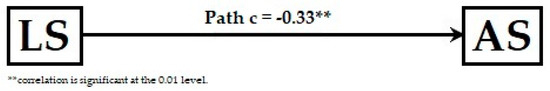 (2) Determining path c by regressing the DV (AS) with the IV (LS) for confirmation that the IV is a significant predictor of the DV (Table 5; Figure 1);