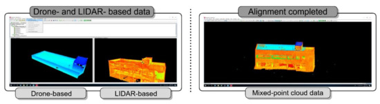 - The final mixed data were completed by conducting the cloud-to-cloud alignment between the selected drone-based data and the LIDAR-based data.