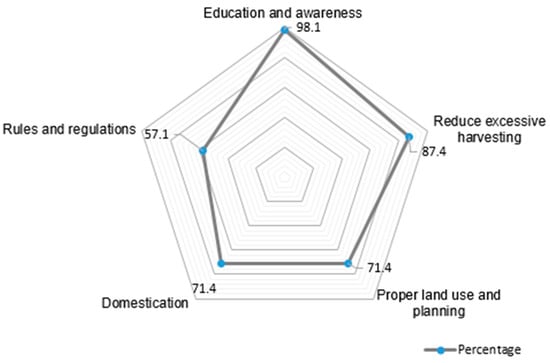 Radar chart showing conservation measures for the medicinal plant Z. chalybeum as suggested by the local community members and key informants.