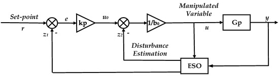 ADRC was originally proposed for the general nth order process, where an nth order ADRC is used. However, accurate model order is usually unavailable in process control. Therefore, a low-order ADRC controller is usually preferred in practice [27]. The principle schematic of ADRC is shown in Figure 13: