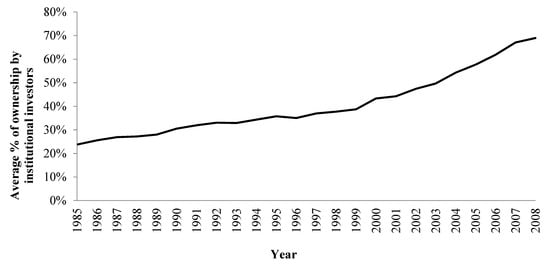 Decent corporate governance is important for both firms and society. Corporate leaders earn the public’s trust by fostering a sound corporate governance environment. Societies avoid threats and problems by implementing legislative processes. Recent corporate scandals have emphasized the importance of corporate responsibility to society and stakeholders. Thus, firms place pressure on themselves to find the best methods for enhancing their relationships with stakeholders, especially large institutional investors. The institutional ownership of corporations has grown substantially in the United States [1]. Institutional investors play increasingly important roles in corporate management because they are large shareholders and, thus, are strongly incentivized to monitor corporations. However, little research has been done into the relationship between institutional investors and their firm’s capital structure [2], even though management generally determines a firm’s debt policy.