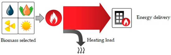 Among the available renewable energies, the use of biomass for heating has experienced great growth in the last decade. Biomass is becoming more and more important as an alternative to traditional fossil fuels, such as coal or oil derivatives, since it is a more accessible and a better-distributed geographical resource, its theoretical balance of CO2 emissions is considered to be zero, and it is renewable, among other advantages [20]. Biomass can be defined as the organic substances that have their origin in the carbon compounds formed in photosynthesis and that can be used as an energy source. Under this definition, many materials can be considered biomass. Solid biofuel sources are usually divided into those of primary nature and those of secondary nature. In the former, which includes energy crops and forest biomass extracted for energy purposes, their management and use are mainly oriented toward energy production. In the sources of secondary origin, in what is generally called residual biomass, we find agricultural by-products (straw, cane, and fruit prunings), forest by-products (remains from forestry interventions, such as branches and trees with no commercial value), and industrial by-products (sawdust, fruit shells and stones, etc.). Both primary and secondary biomass can be used either via direct combustion or thermochemical processes, such as pyrolysis and gasification [21]. Additionally, both primary and secondary sources can be used for the generation of thermal energy in boilers and district heating networks, as well as for the generation of electrical energy in biomass plants.