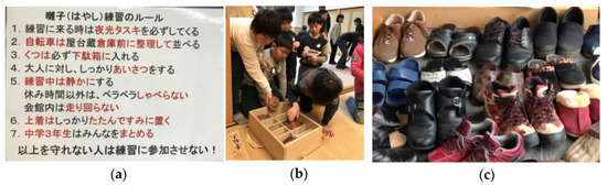 Observation is experiencing the activities and lives of people being studied in the field using a researcher’s senses [18,19,20]. Participant observation requires long-term interaction with the people being studied [21], which includes observing residents’ daily life. We entered the field as observers in April 2019 to integrate into Seiryu-tai Hayashi training, and used sketching, pictures, photography, recording, and field notes to record firsthand material of Hayashi cooperative learning and organize the data. Examples are provided in (Table 1).