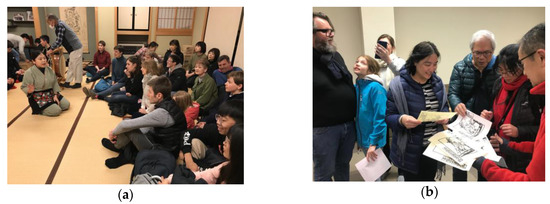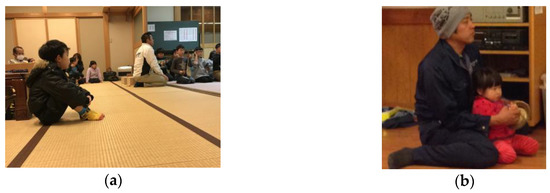 Throughout the 14 days of learning, the Seiryu-tai Hayashi performers of the Furukawa Festival were trained by instructors. Without using written musical scores, the instructors teach the learners the performance skills through intuition instead of following specifically designed instructional material. This teaching approach is similar to a learning design activity and is also how Hayashi performers of the Furukawa festival inherit Hayashi skills. We discovered that learners, instructors, and senior learners formed the core of cooperative learning, whereas elder adults and infants had an imperceptible effect by accompanying learners and experiencing the learning atmosphere, with their presence not deliberately arranged within cooperative learning. Because foreigners are permitted to visit, they are given the opportunity to observe and learn (Figure 13). Learners, instructors, and senior learners who are skill demonstrators are the core components of the inner circle. Through Hayashi cooperative learning, the inner circle expands outward to include older adults, infants, and foreign visitors as secondary components of the learning process.