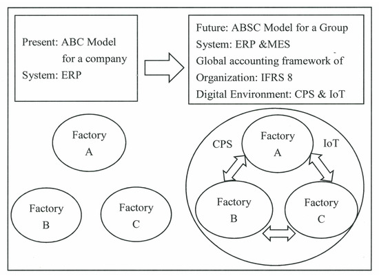 A variety of optimal models have been designed for production-mix decisions by various mathematical programming methods under ABC [4,32,33,38,40]. The ABSC production decision model can widely use in various factory types. Regarding the systematization and integration of the ABSC production decision model into an international business group, it must be in line with the definitions of the IFRS8 operating segments, and its measurement of reportable segments. Regarding disclosing the revenue of IFRS 8, the reported revenues include external customers, intersegment sales and transfers [16]. Consolidated financial statements include revenues and expenses for the business activities of the same operating segment [2,3]. In the digital age, the extended ABSC model is based on ABC, smart data and real-time information [4,8]. Figure 3 compares ABC and ABSC.