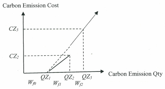From the optimal solution of the case study as shown in Table 5, we know the steel group’s total carbon emission quantity is 87,171.2 tons ( = EQ1 + EQ4 = 32,000 + 55,171.2). In order to achieve the carbon emission reduction goal of environmental sustainability, the steel group may add the following constraint into the production decision model presented in Table 5:
