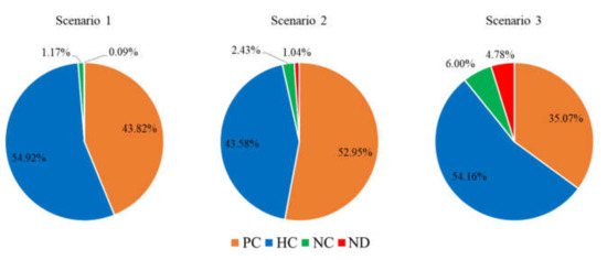 This paper also considers seven cases in Scenario 3 to qualify the impact of income level on education capital, HC, and IW, depending on the adjusted income level in the NCC. The adjusted factor of income level in the NCC is defined by the following equation: