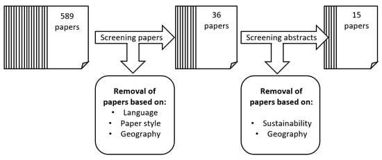 Another consideration is that using our search strings resulted mainly in papers that were considered to be outside the scope of our analysis. The comprehensive search strings included all papers containing one or more words from each group of words connected to each sustainability dimension in our search string according to the string set-up. The identification of ‘false’ papers (i.e., containing key words, but not covering the topics of interest) could have been minimised with a more specific search string, either containing fewer words or more specific searches, for instance for matches only within the title, instead of in title, abstract, and key words. However, such an approach would have increased the risk of missing relevant papers. The wide range of hits due to the comprehensive search string was instead manually assessed to identify relevant papers from the abstract, so the risk of deleting relevant papers was low.