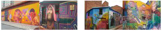 From the commercial aspect, art invigorates tourism products, increases market attractiveness, provides new value to a region, and performs an important role in sales and promotion, while also improving product quality and appeal [41]. Graffiti has become an art tourism space that contributes not only to the creation of new tourism assets, but also to its revitalization [15]. For example, through the promotion of graffiti tours, graffiti has now come to be perceived as valuable rather than negative in terms of urban aesthetics, and as contributing to place-making by performing a key role that gives an identity to a city [4,38]. Graffiti can be linked to urban morphologies and the social identity of a place, [13] leading to it ultimately becoming a tourist attraction. In other words, a city’s graffiti can be promoted as a new tourist spot and become a communication tool that leads to interaction between residents and tourists.