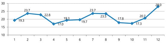 For traveler ratings, TripAdvisor’s “The Original Bogota Graffiti Tour” was rated excellent in 1843 reviews (92.9%) and terrible in six reviews (0.3%). On the basis of the date of experience, there were 764 reviews from January 2013 to December 2016 and 1220 reviews from January 2017 to July 2019. Examined by month, most travel experiences were in December, followed by similar numbers in February, March, July, and August. December is the month in which the dry season begins in Colombia, with most Colombians taking a vacation between December and mid-January (see Figure 2 and Figure 3).