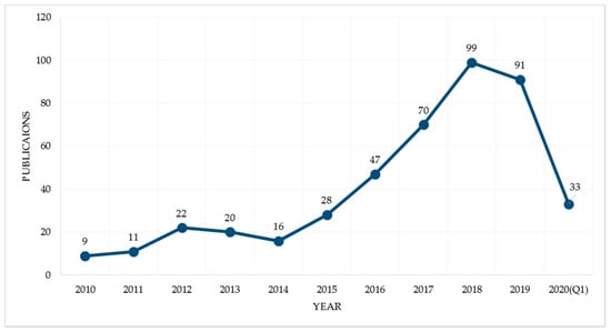 The findings revealed that the use of GST-based methods over the past ten years followed a rising trend, while more researchers relied on such methods in recent years. Figure 1 reports the number of the publications (according to publication year) as found on the databases between 2010 and the first three months of 2020. Clearly, the number of the publications showed a continuously increasing trend, which clarified that more researchers drew on GST-based methods in addressing/analyzing sustainability issues. In this study, bibliographical tools were utilized based on the keywords; after the initial search, the repetitive records were removed, as a result of which the number of the publications was cut down to 325 ones. Next, the “titles”, “keywords”, and “abstracts” of all remaining publications were meticulously investigated by the research team so that they would be compatible with the research objectives. Although some of the publications appeared to be relevant considering their “titles” and “keywords”, they were accordingly found irrelevant to the topic when their “abstracts” and “full texts” were closely studied. As a result, because they lacked the criteria sought after in this research, they were eliminated. For instance, some publications mentioned sustainability in their abstracts, although upon further scrutiny, it was revealed they did not directly address sustainability or its various sub-topics. The research team inspected the papers very carefully to find those specifically relevant to the field of sustainability.