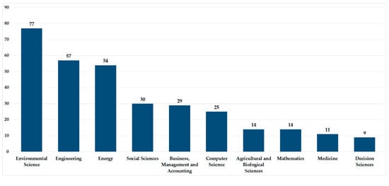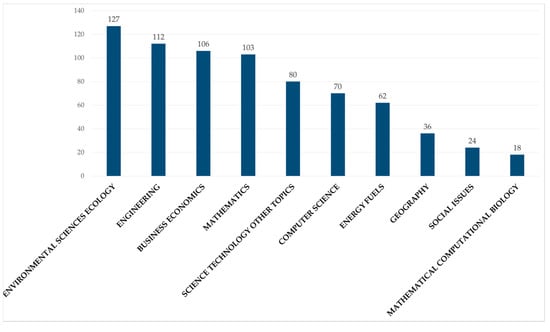 Table 3 shows the domains and topics probed into in each of the publications; the findings demonstrated that “sustainability assessment” was the sub-topic that was more explored through GST than other topics; 19 publications, out of the 40 ones selected, utilized GST-based methods for “sustainability assessment.” Meanwhile, 13 publications used GST to look into “industrial sustainability”; “urban sustainability” and “energy sustainability” as the areas that more frequently relied on GST than the other areas. Moreover, the top-10 areas most frequently addressed on Scopus were as follows in order of importance: environmental science, engineering, energy, social sciences, business, management and accounting, computer science, agricultural and biological sciences, mathematics, medicine, decision sciences. The frequency of each of these areas is shown in Figure 3.