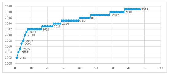 The first research on events impacts and legacy contained 77 scientific papers written in the English language and all published in the 21st century (demonstrated in Figure 1). Fewer papers appear from 2002 to 2011, with increases shown from 2012 to 2019.