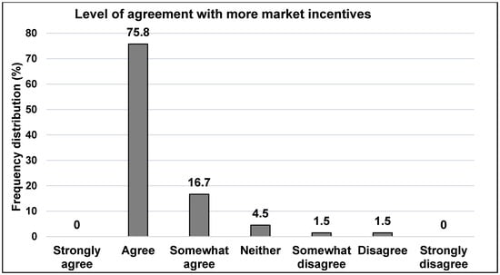 Frequency distribution of agreement level with the increased implementation of market incentives in construction and demolition (C&D) waste stream.