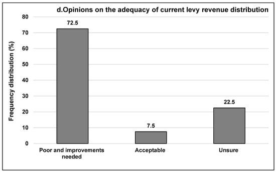 Lastly, there is a debate on how to spend the revenue generated from landfill levy imposition. Therefore, this survey targeted respondents’ opinion about the current system of levy revenue distribution. The results, as shown in Figure 4d, suggested that majority of participants (72.5%) believed that there is a poor distribution of the levy revenue and improvements needed to maximise waste recovery in C&D waste sector. One widely referenced recommendation was to return the revenue to the waste industry. The other interesting finding was that almost one-fifth of participants were unsure about the current distribution system.