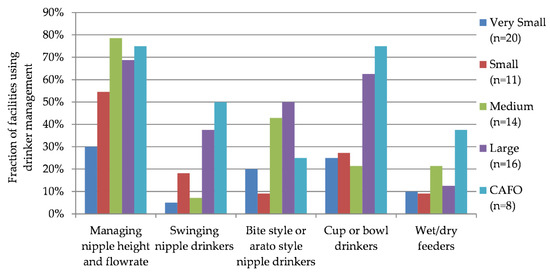 Animal drinker management methods by farm size. Note: All facilities participated in question, n = 69.
