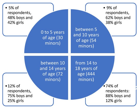 As far as the mental condition of the children is concerned, it can be pointed out that 80% of them survived some trauma during migration, were often detained against their will or forced to work or break the law, most often by theft and extortion. Some children either did not want to talk about such issues or did not have such experience, although it is difficult to determine reliably. Girls were particularly vulnerable to forced marriages or sexual exploitation. The minors who travelled alone emphasised that they had to hide to avoid becoming victims of human trafficking and organised criminal groups. Those children often joined other family groups, pretending, by mutual agreement, to be a member. However, we could not verify how many respondents from the two oldest age groups told the truth when claiming they were travelling with relatives or family. Most did not have any documents and frequently were not able to accurately determine the beginning of their journey. In the two oldest age groups, illiteracy and the inability to indicate the place of origin on a map were very common. This information was deduced on the basis of language and other cultural and ethnic determinants.
