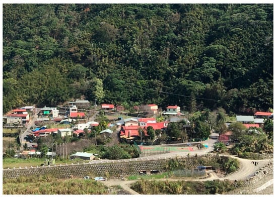 - Chang, S.K. Living Adaptation of Reconstruction in the Tribal Village Relocation—The Case of Poftongaveoveo Community in Chiayi County. Master’s Thesis, National Chengchi University, Taipei, Taiwan, 2019, unpublished. [Google Scholar]