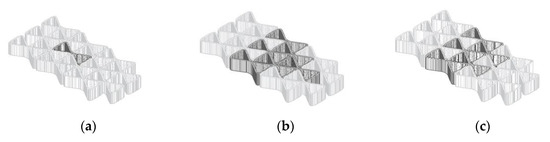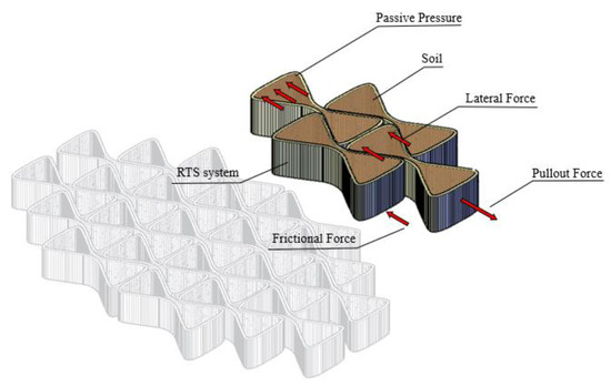 Ti is the ultimate pullout load required for the complete mobilization of the RTS element which depends on the friction on the upper and lower faces, the reactions with the neighboring elements, and the pushing force between the fill and the rim. Figure 8a shows the simplest configuration that can be obtained for RTS. However, the magnitude of lateral forces (FL) is related to the arrangement of rows in the arrangement and tends to gradually increase with the amount of elements. With the inductive method, it can be verified that: