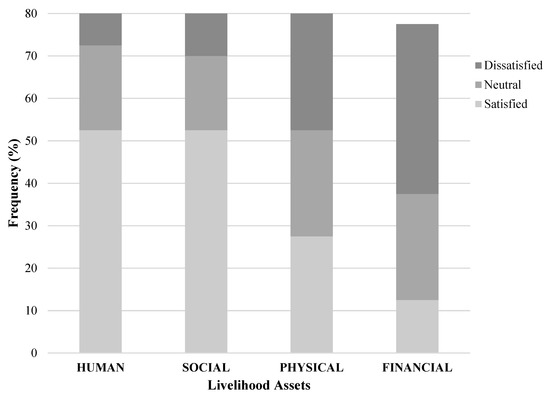 Tilapia farmer’s level of satisfaction with tilapia aquaculture’s contribution to their livelihood assets. Tilapia farmers, in general, had high levels of satisfaction with tilapia farming’s contribution to their social and human assets. The highest level of dissatisfaction was with the activity’s contribution to financial assets.