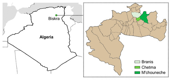 - Farhi, A. Biskra: de l’oasis à la ville saharienne (Note). Méditerranée 2002, 99, 77–82. [Google Scholar] [CrossRef]