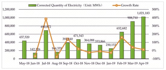 The corrected electricity quantity of Ningxia auxiliary service market from May 2018 to April 2019. (Data source: Northwest China Energy Regulatory Bureau of National Energy Administration of the People’s Republic of China).