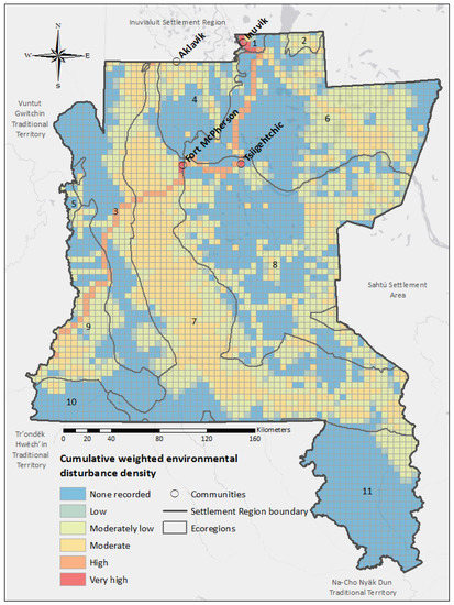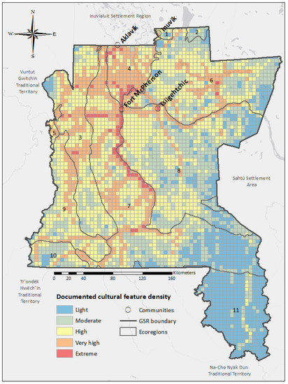 Figure 4 shows that the most intensive cultural use in the GSR occurs near waterways like the Peel River (