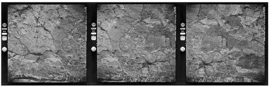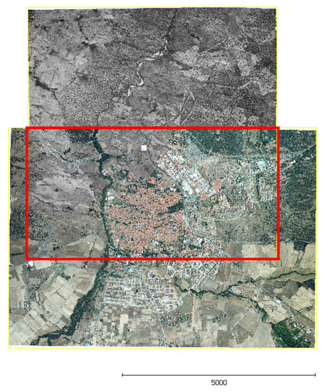 Regarding the case study evaluated, three historical black and white images with a scale of 1:33,000 were analysed. These American flight images were executed by the USAF in collaboration with the SGE and the IGN between March 1956 and September 1957 (Figure 2).