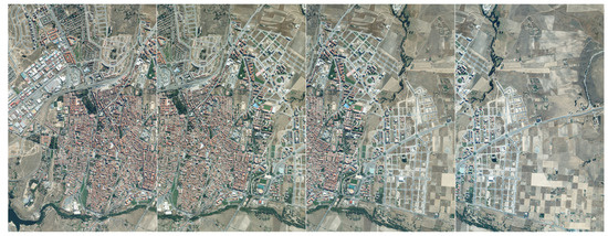 Cities and towns are temporary expressions of the social, economic, and cultural history of the population that lives and works within them. These spaces have been formed throughout history and are represented by the construction of new urban spaces; the creation of new infrastructures (e.g., roads or bridges); or even the expansion and remodelling of existing spaces, mainly historical districts [1]. These new urban spaces play an important role for the future development and sustainability of these cities and towns [2,3]. Trying to find a balance for the urban development of cities, urban growth analytical tools are able to evaluate and integrate the spatial changes suffered by population centres with the demographic, social, and technological conditions of each period. This is of great interest to administrations and companies related to the urban sector [4,5,6].