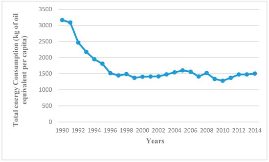 Figure 1, the energy consumption sharply declined in Azerbaijan for the period of 1990–1996. This decline can be explained with different factors, such as the closedown or worsening of the industry sector after disintegration of the Soviet Union, as well as a war situation after the independence. For the period of 1996–2015 a relative increase, with some fluctuations, can be observed in energy consumption. The observed increasing trend, with some volatility, can be a result of the employed energy policies for the mentioned period.