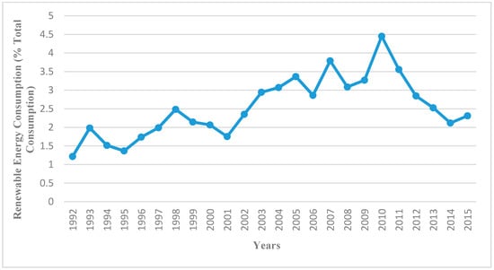 Hence, it is crucial to examine the renewable energy consumption behavior. Annual renewable energy consumption (% total energy consumption) data is illustrated in