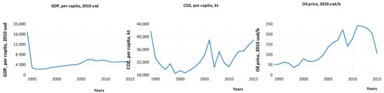 2 emissions, and oil price in real terms. Namely, the functional specification can be expressed as follows: