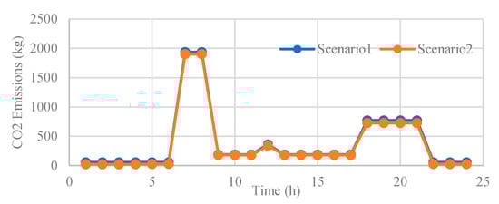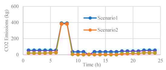 CO2 Emissions in the First and Second Scenarios (Configuration 3, F2).