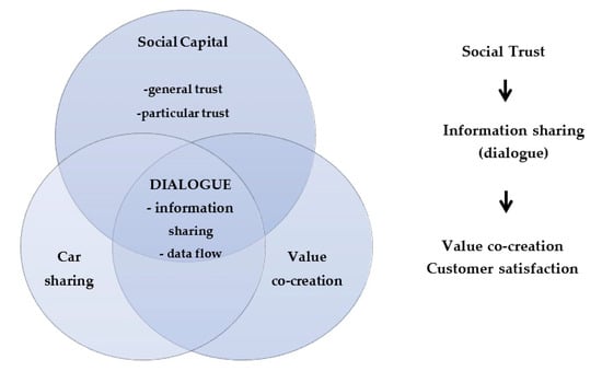 general social trust, which extends to people as a whole, has no effect on the willingness of customers to share information. A large body of research papers on car sharing, social capital, consumers’ pro-environmental behavior, and the value co-creation have been published in prestigious journals of economics, marketing and management, urban mobility, and transportation. However, only a few of these combine shared mobility, value co-creation, and social capital [