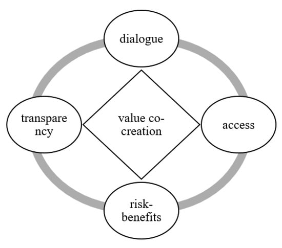 Dialogue, which is one of the elements of the DART model (dialogue, access, risk assessment, and transparency). We focus on Dialogue as an important aspect of sharing activity and as a crucial and fundamental part of the value co-creation process [