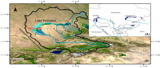 - Petr, T. Lake Balkhash, Kazakhstan. Int. J. Salt Lake Res. 1992, 1, 21–46. [Google Scholar] [CrossRef]