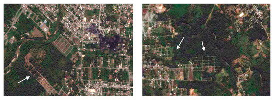 The urban expansion study highlights that more than half of the current urban footprint comes from areas in the process of consolidation (Figure 5). This is due to a low-density urban growth pattern, which is associated with the agricultural activities carried out by the population for economic sustenance [16,34,35]. One-third of Puyo’s urban sprawl area has high environmental value green areas (SF), while one-quarter corresponds to heavily degraded areas (G) that are composed of grasslands that were once Amazon rainforest. In contrast to Brazilian Amazon soils, in Ecuador they vary in fertility due to some being of volcanic origin and having high fertility. Therefore, the population pressures on the land in the Ecuadorian Amazon region is resulting in land subdivision and intensification [17,19]. Urban sprawl occurs regardless of the context, as has been seen in European countries [64]. It has serious effects on land uses. In European countries, it causes loss of crop land and ecosystem services with devastating hydrogeological effects, as well as impacts on settled human communities [64]. In the Amazonian context, however, this means that the agricultural frontier has expanded further and further, leading to deforestation and a loss of biodiversity. Previous studies stated that urbanization will play an important role in the spatial reconfiguration of the Ecuadorian Amazon due to high population growth rates and the expectation of further expansion of the oil industry [17,22]. In fact, under further expansion of the oil industry scenario, urban growth is better interpreted as a symptom rather than a driver of forest loss and environmental change [19,65]. Further research should be developed in order to study the urban sprawl in Ecuadorian Amazon cities based on previous developed low-cost or free tools [37,64].