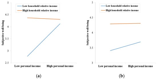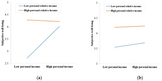 Moderating effects of relative personal income: (a) urban sample; (b) rural sample.