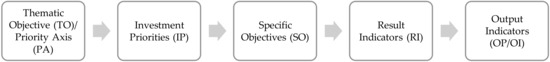Together with the priority for Technical Assistance, the Thematic Objectives are further broken down into a maximum of seven Investment Priorities [110], with related Specific Objectives [111], measured through the so-called Result Indicators and Output Indicators (Figure 4).