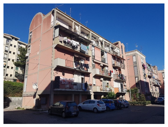 In EU seismic countries most of the existing buildings were built between the 1950s and 1980s due to the high housing demand of that period. Many public housings are among these. For instance, in Italy, around 800,000 public housing dwellings were built within that time [32]. Typically, these buildings are multi-story and multi-family (apartment blocks) and have RC structural frames (often one-way frames) with infill walls made of hollow clay bricks (Figure 5).