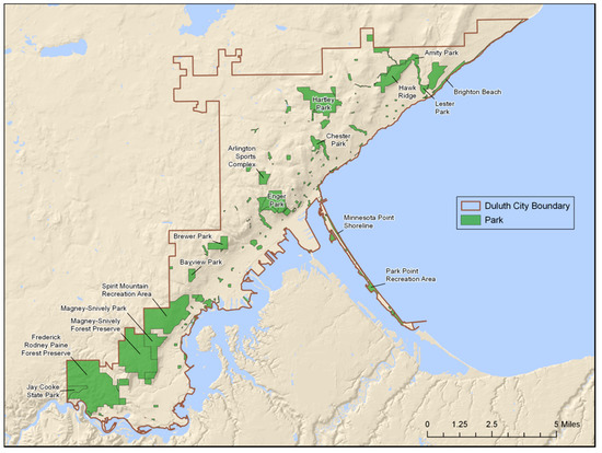 - City of Duluth. Parks and Recreation: The City of Duluth. Available online: http://www.duluthmn.gov/parks/ (accessed on 10 September 2019).