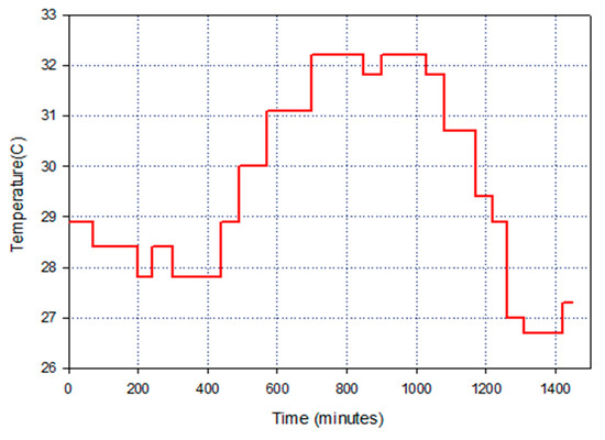 The fuzzy controller is activated by providing input activation parameter , which is obtained by the difference between parameter values of of the forecasted internal temperature at time n and the value of measured internal temperature at time where k = 5, 10, 15…, 60 min. The fuzzy controller architecture is shown in Figure 4, which handles the HVAC-DHW system by on/off switch and controls the air inlet speed. The fuzzy control system takes rough input value of and , which is further transformed into output values in linguistic form by using a selected set of membership functions. The linguistic forms used are: