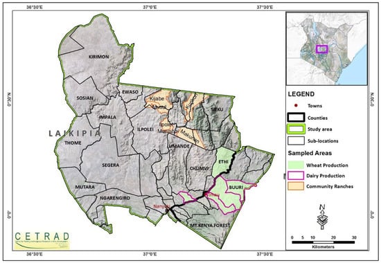 - Government of Kenya. Household Baseline Survey Report: Laikipia County; Agricultural Sector Development Support Programme (ASDSP), Ministry of Agriculture, Livestock and Fisheries, Government Press: Nairobi, Kenya, 2014.